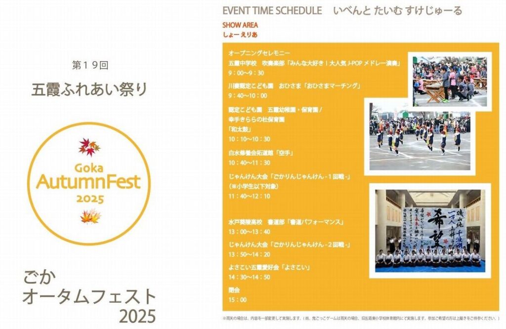 グルメ 五霞で「ふれあい祭り~オータムフェスト」 11月8日・ごかみずべ公園 ステージイベントにグルメ、体験楽しめる
