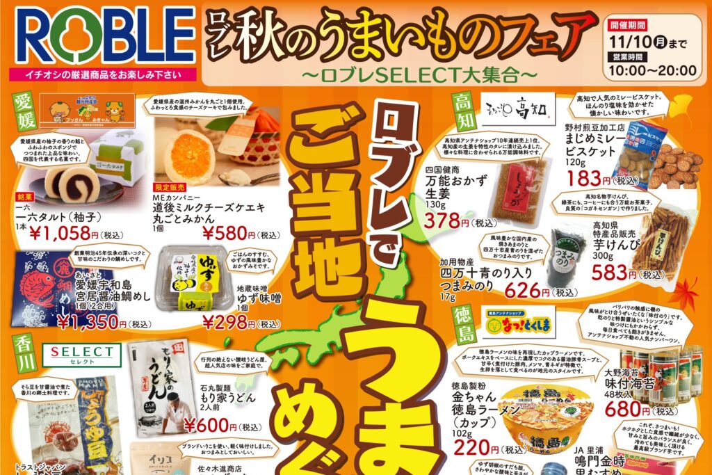 グルメ 小山市のロブレで「秋のうまいものフェア」全国のイチ押しグルメ570商品が揃っています
