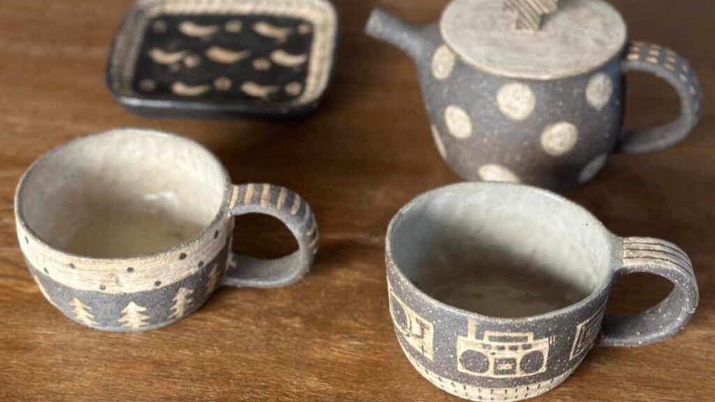 イベント 黒に白が映え、かわいくかっこいい陶器です! 桐生で22日まで「宇田令奈展」