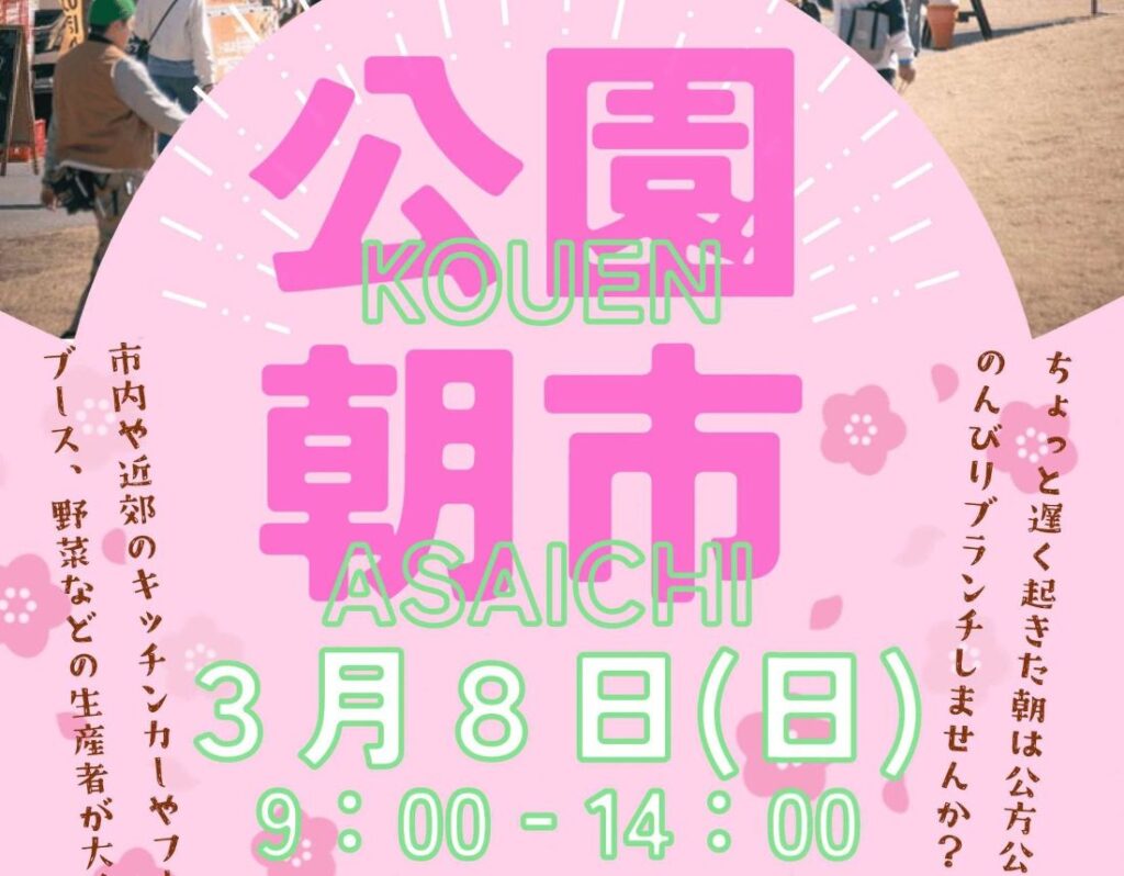 イベント 古河で「公園朝市」 3月8日午前9時~ 古河公方公園 新鮮農産物販売、キッチンカー出店、フードブースも開設!
