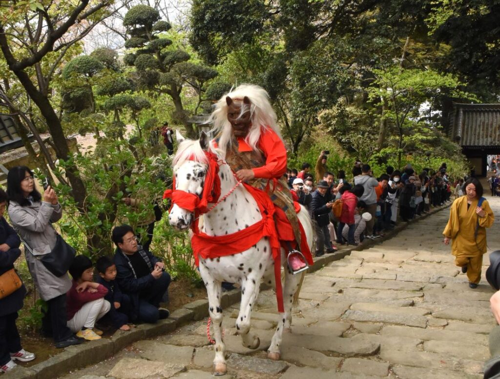 イベント 雨引観音で奇祭「マダラ鬼神祭」 4月12日 日本二大鬼祭 鬼神伝説 馬で階段駆け上がり、矢を放つ 桜川市