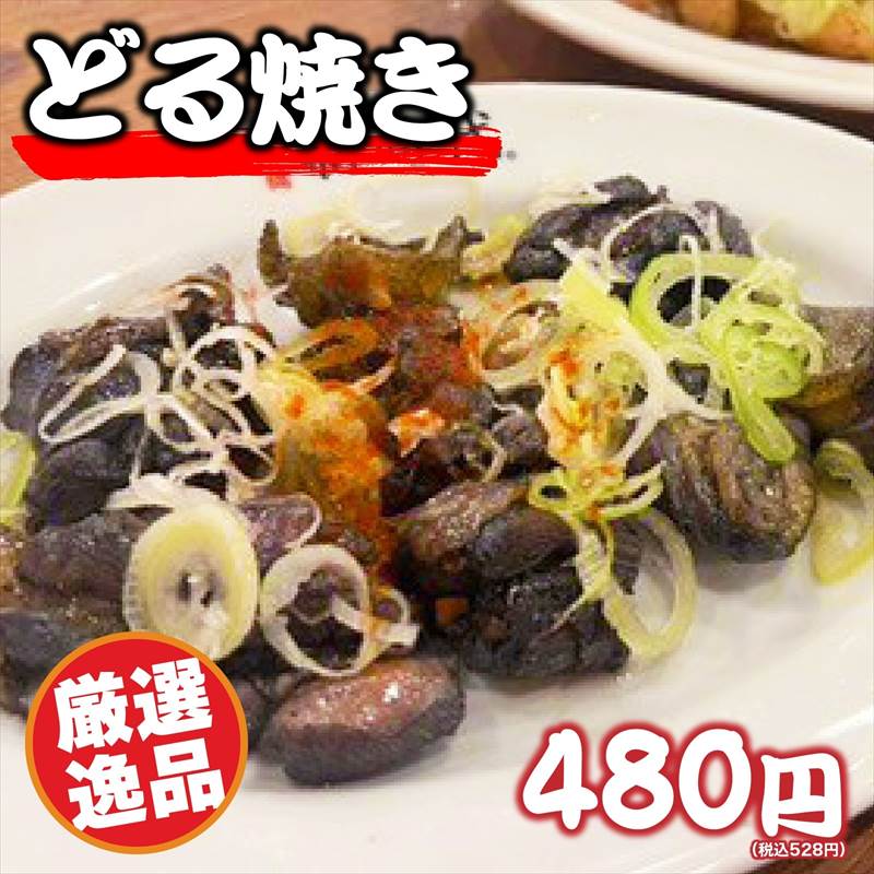たとえばかめばかむほど…うまみが出る国産親鶏の炭焼き「どる焼き」(528円)は、コリコリ食感でこちらも一度食べたら止まらない一品。