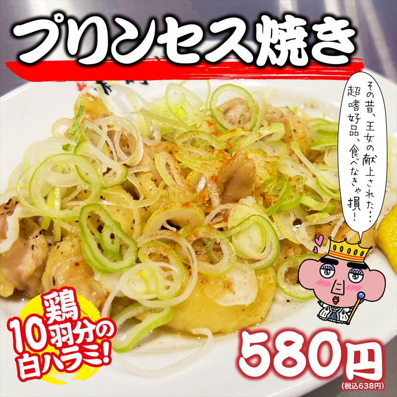 また、希少な鶏白ハラミを使った「プリンセス焼き」(638円)は、プリプリの食感でビールとの相性がGood!