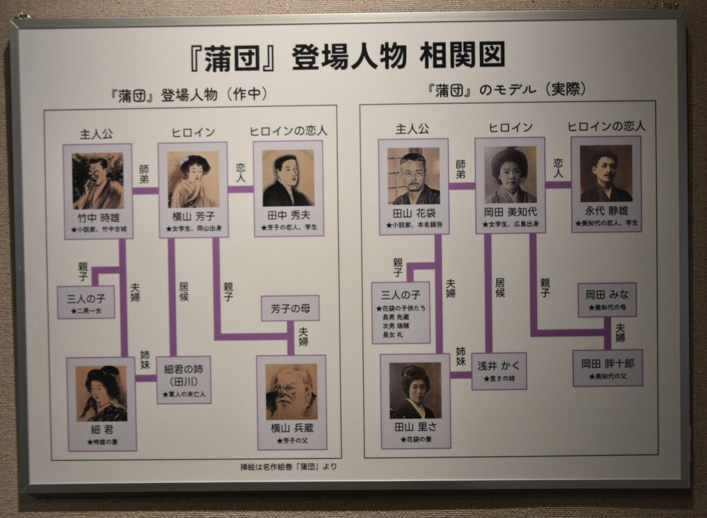 企画展のテーマでもある「蒲団」を読んだことがない人でも楽しめる展示です。好評のため、会期が延長になりました。