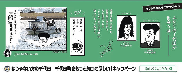 知名度の低さを実感し、それをウリにする千代田町では、プロモーション活動「#じゃない方の千代田」を展開しています。東京都千代田区から電車で2時間で着ける「もう一つの千代田」の存在を高めるため、千代田区と千代田町の違いを自虐ネタも含めながらユーモラスにSNSや交通広告でPRするなど、町ならではの工夫で認知度アップに努めています。