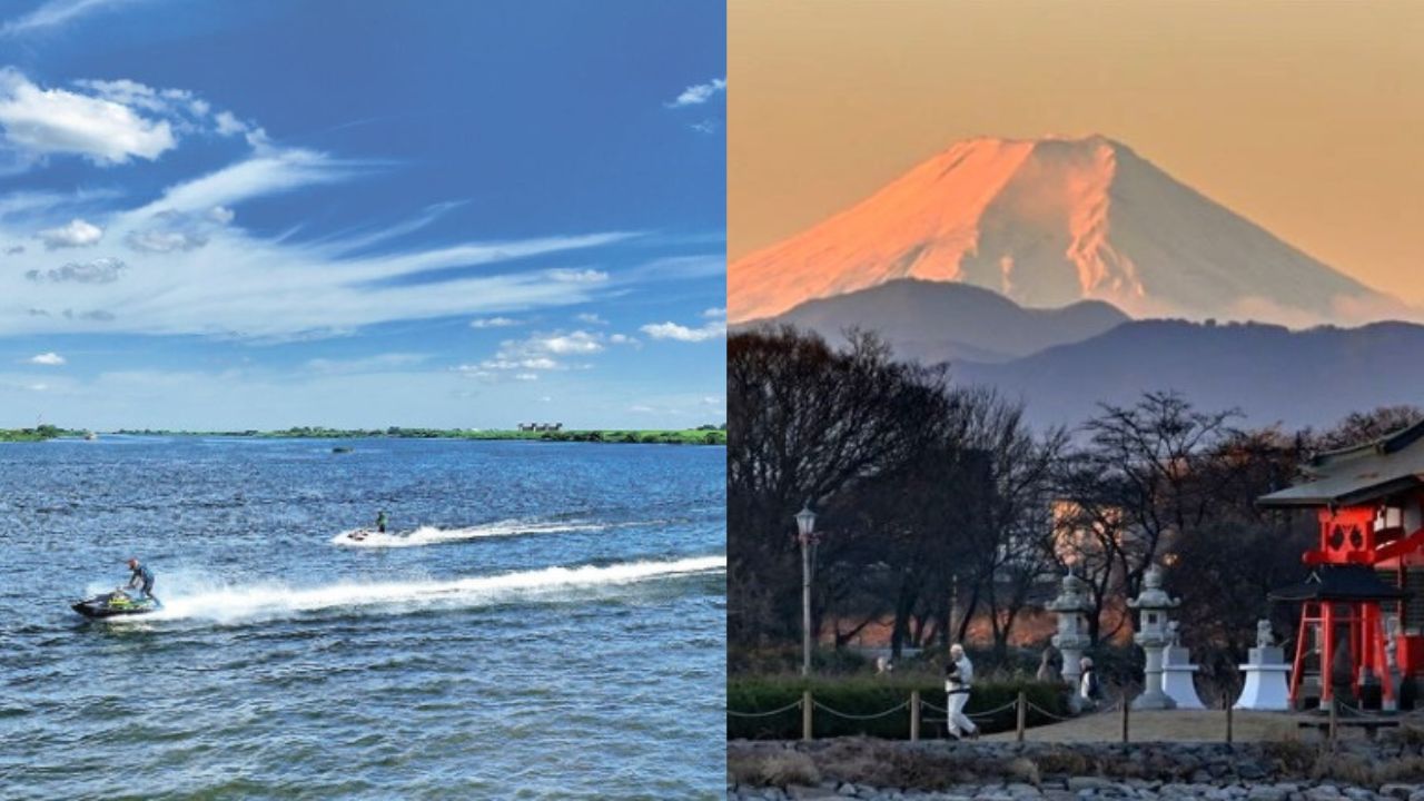 日本遺産「里沼」の一つであり、群馬県館林市と邑楽町にまたがる多々良(たたら)沼は、冷たい空気が澄んだ冬に、富士山と神社のコントラストが楽しめるスポット。橋を少し渡ったところの浮島に「浮島弁財天」という神社があります。白い雪を被る富士山が背景になり、神社の荘厳な雰囲気が伝わってくるようです。沼には白鳥が飛来するなど自然が豊かな地域。それだけで住み続けたくなりそうです。