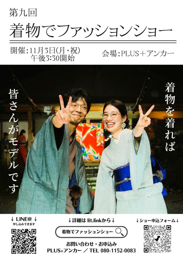 11月3日に群馬県桐生市の古民家カフェ「PLUS+アンカー」で開催される、参加者がお気に入りの着物を着てランウェイを歩く「第九回着物でファッションショー」の参加者を募集しています。
