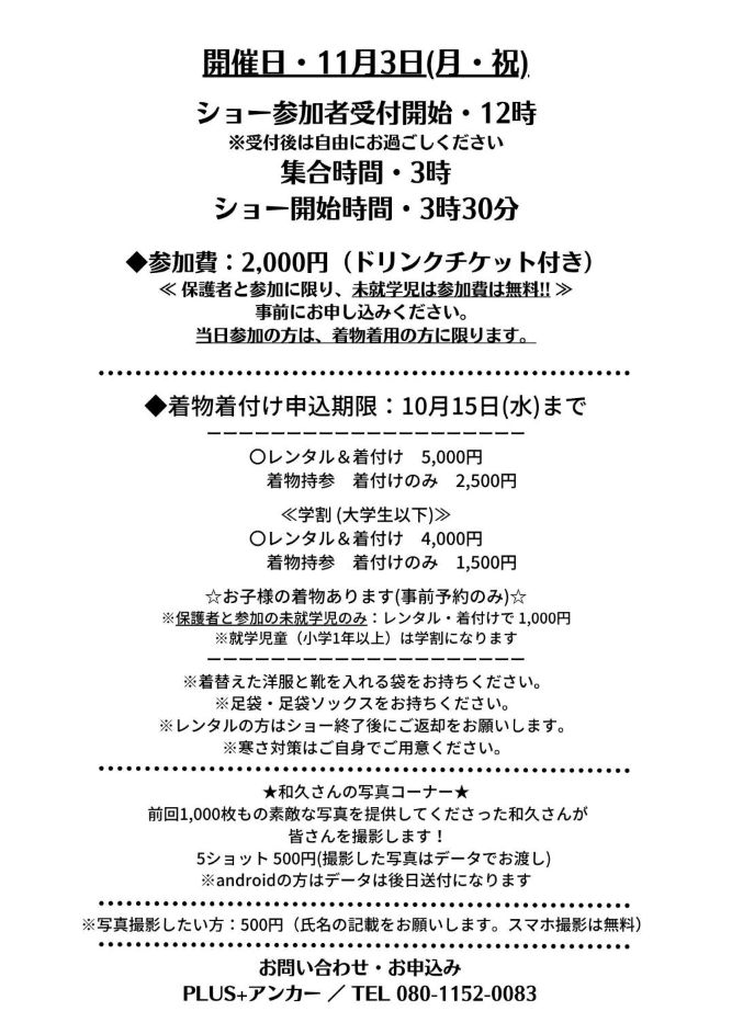 着付け申し込み期限:10月15日※当日参加の方は、着物着用の方に限ります