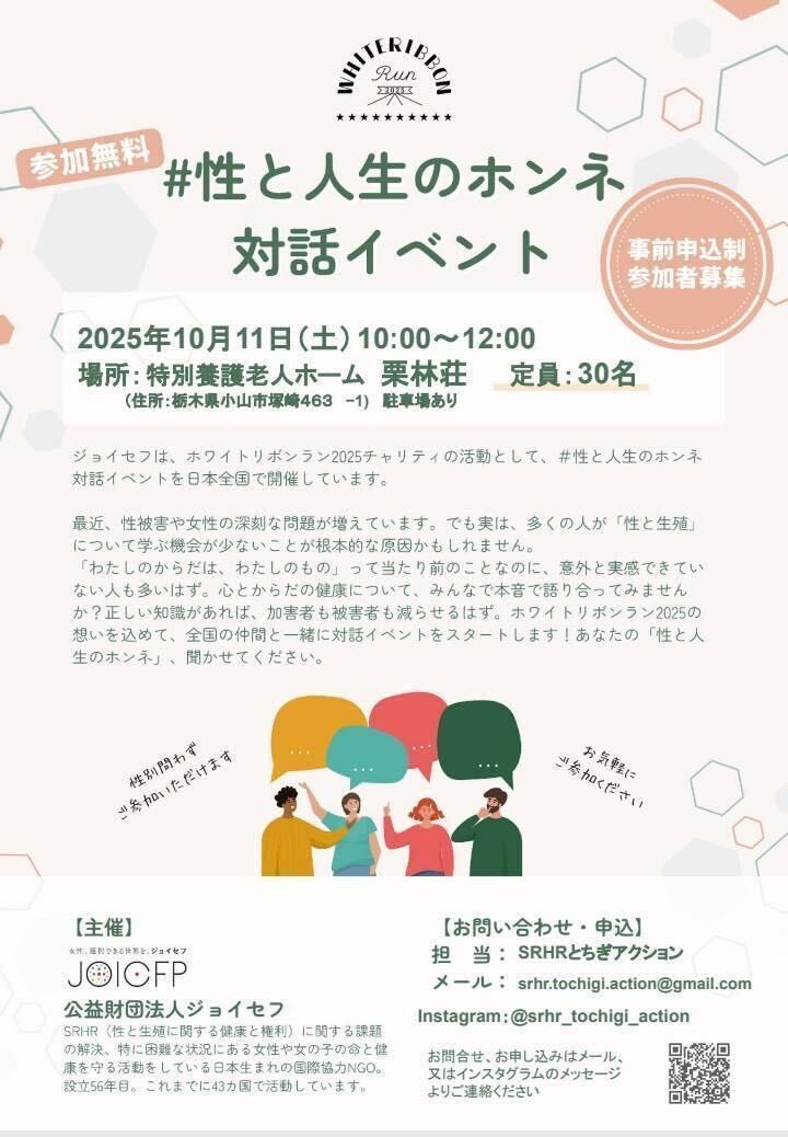 イベントを担当する「SRHRとちぎアクション」は、チャリティーイベント「ホワイトリボンラン」の小山拠点運営や出前講座などを通して、性への理解を広げてきました。