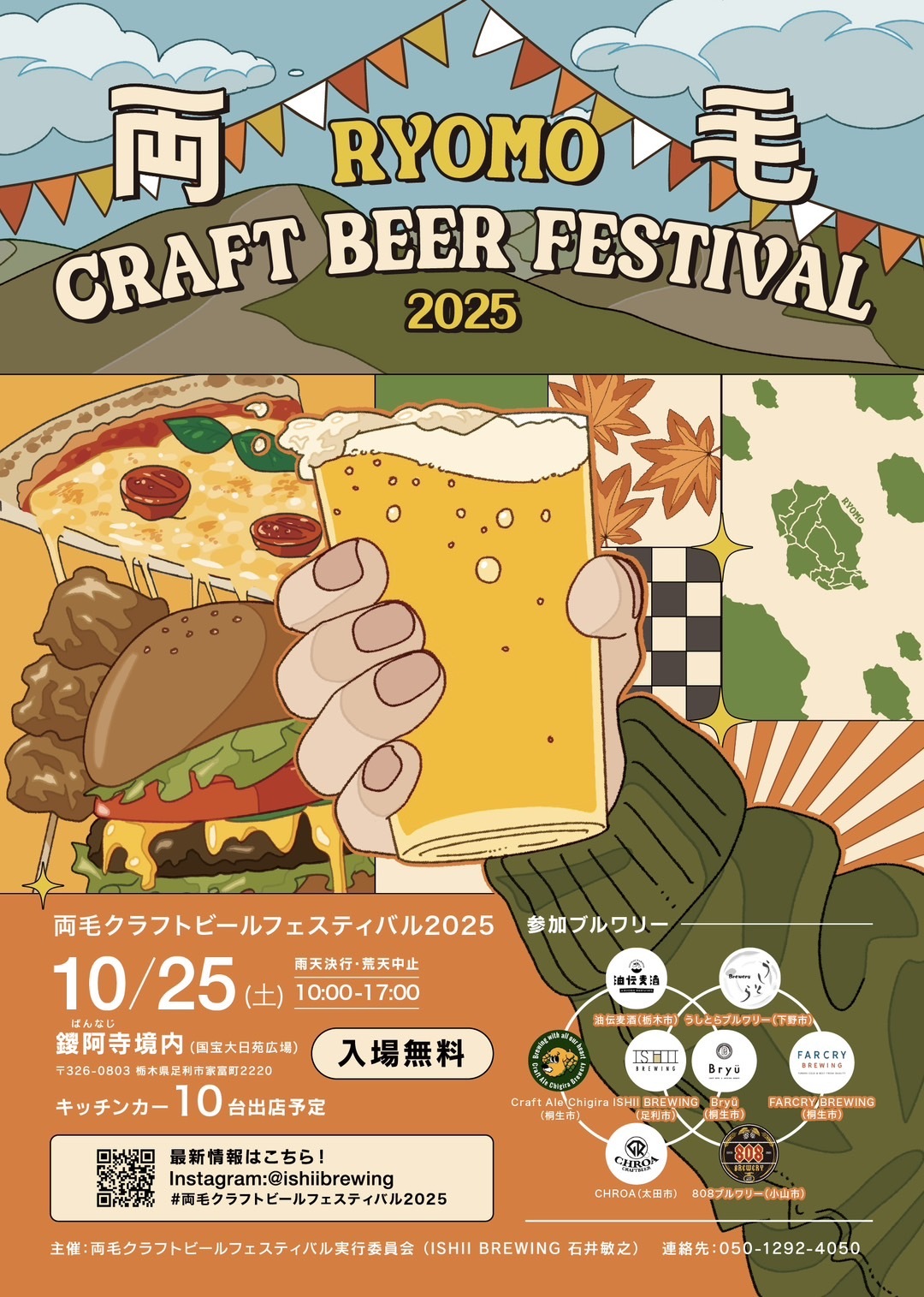 栃木県足利市の鑁阿寺で10月25日(土)、栃木・群馬県産のクラフトビールを味わえるお祭り「両毛クラフトビールフェスティバル2025」が開催されます。出店する醸造所(ブルワリー)や開催場所などについてお伝えします。