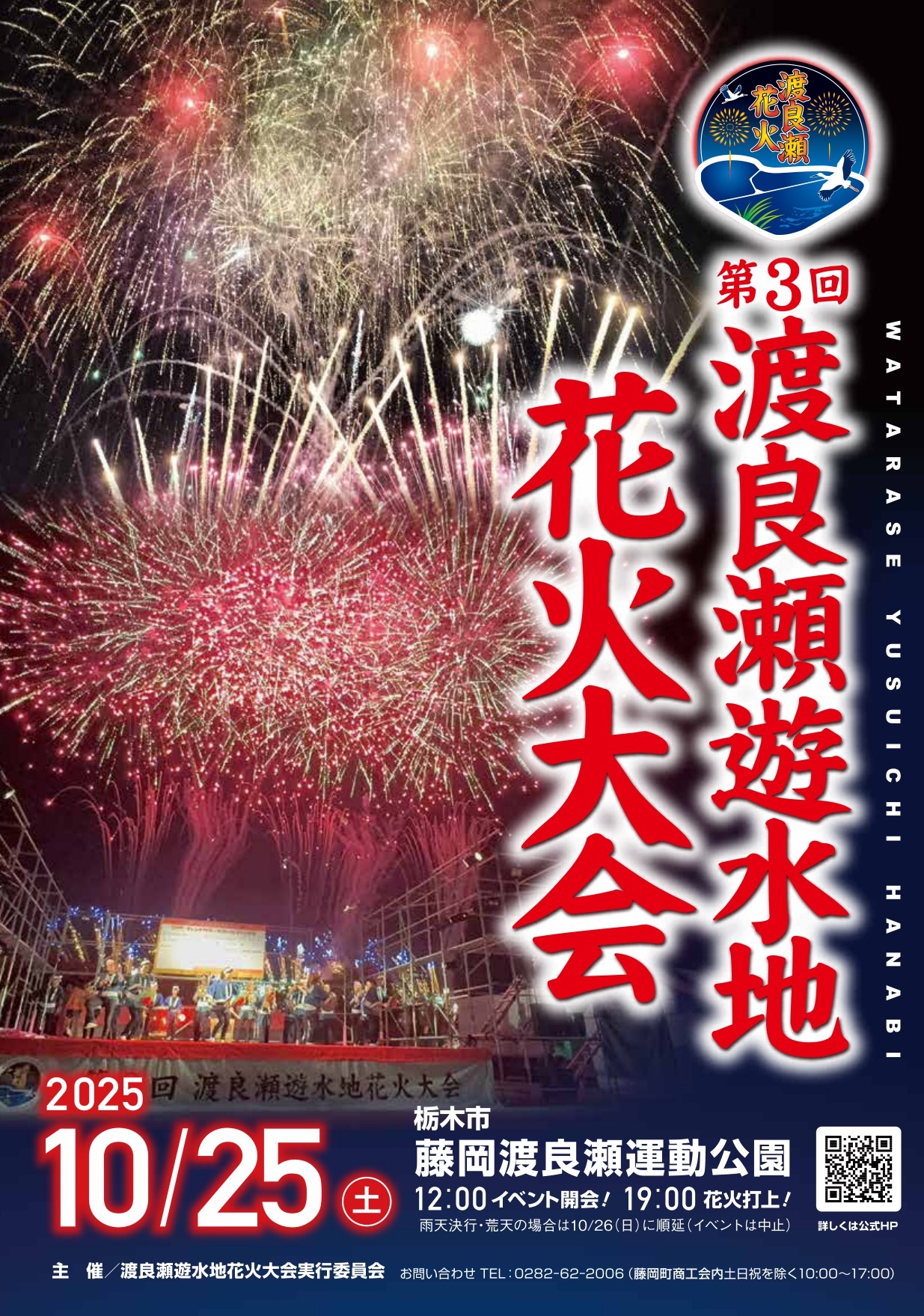 栃木県栃木市の藤岡渡良瀬運動公園で10月25日(土)、第3回渡良瀬遊水地花火大会が開催されます。2年前に復活した地元の一大イベントが、今年も秋の夜空を盛大に彩ってくれます。開始時間や打ち上げ数、フード出店者、駐車場などの情報についてお伝えします。