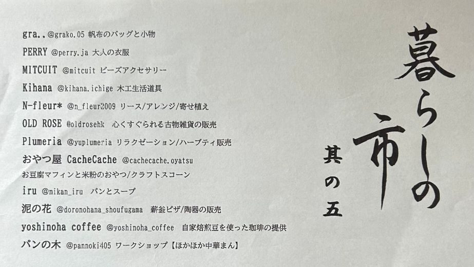 群馬県館林市のパン店や明和町のパン教室、邑楽町の陶芸家らによる、年に1度の人気マーケット「暮らしの市 其の五」が11月3日、栃木県佐野市長谷場のギャラリー「泥の花」で開かれます。
