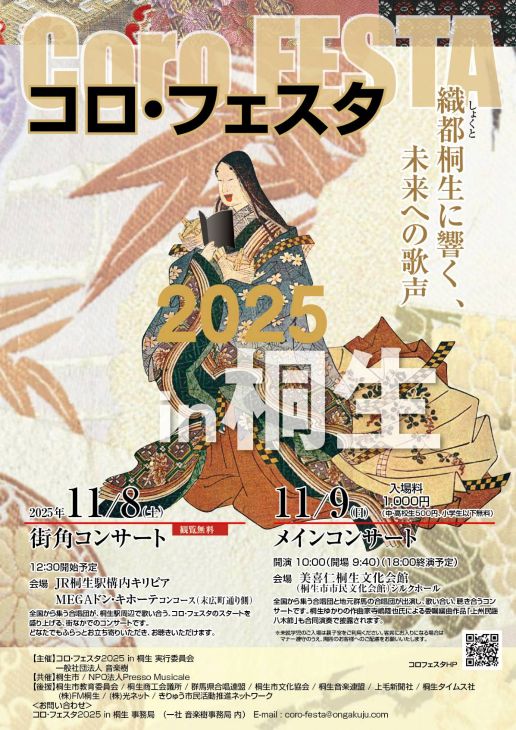 問い合わせ:コロ・フェスタ2025in桐生事務局・一般社団法人音楽樹事務局内(メール:coro-festa@ongakuju.com)