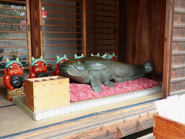 なでると地震を除けて、自信がわくという「なまずさん」、財運・健康・子孫繁栄の七福神「福禄寿」、音楽・芸能・学問・財運・美人祈願の「弁財天」、助けの手を差しのべる「雷童子」、東と西に「神馬」、「奥宮」は安産・家内円満・縁結びの女神がいます。