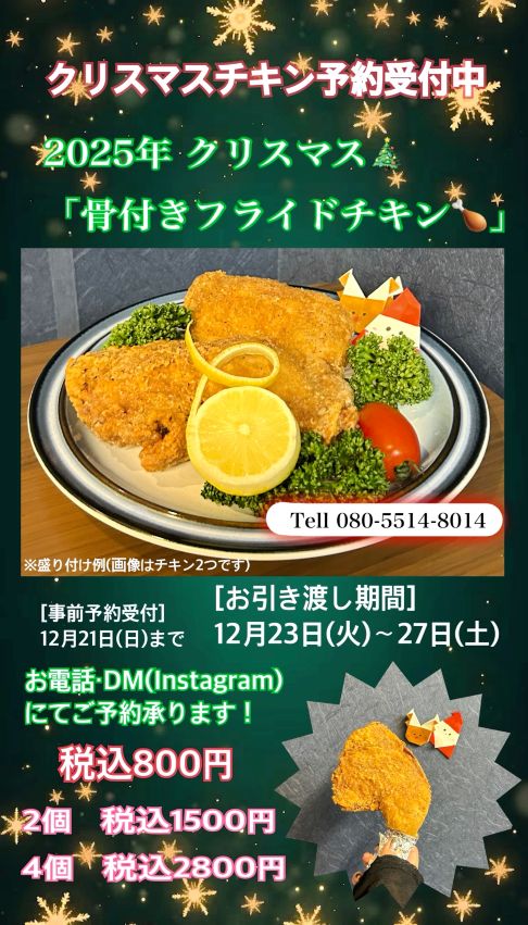クリスマスチキンの予約受付中