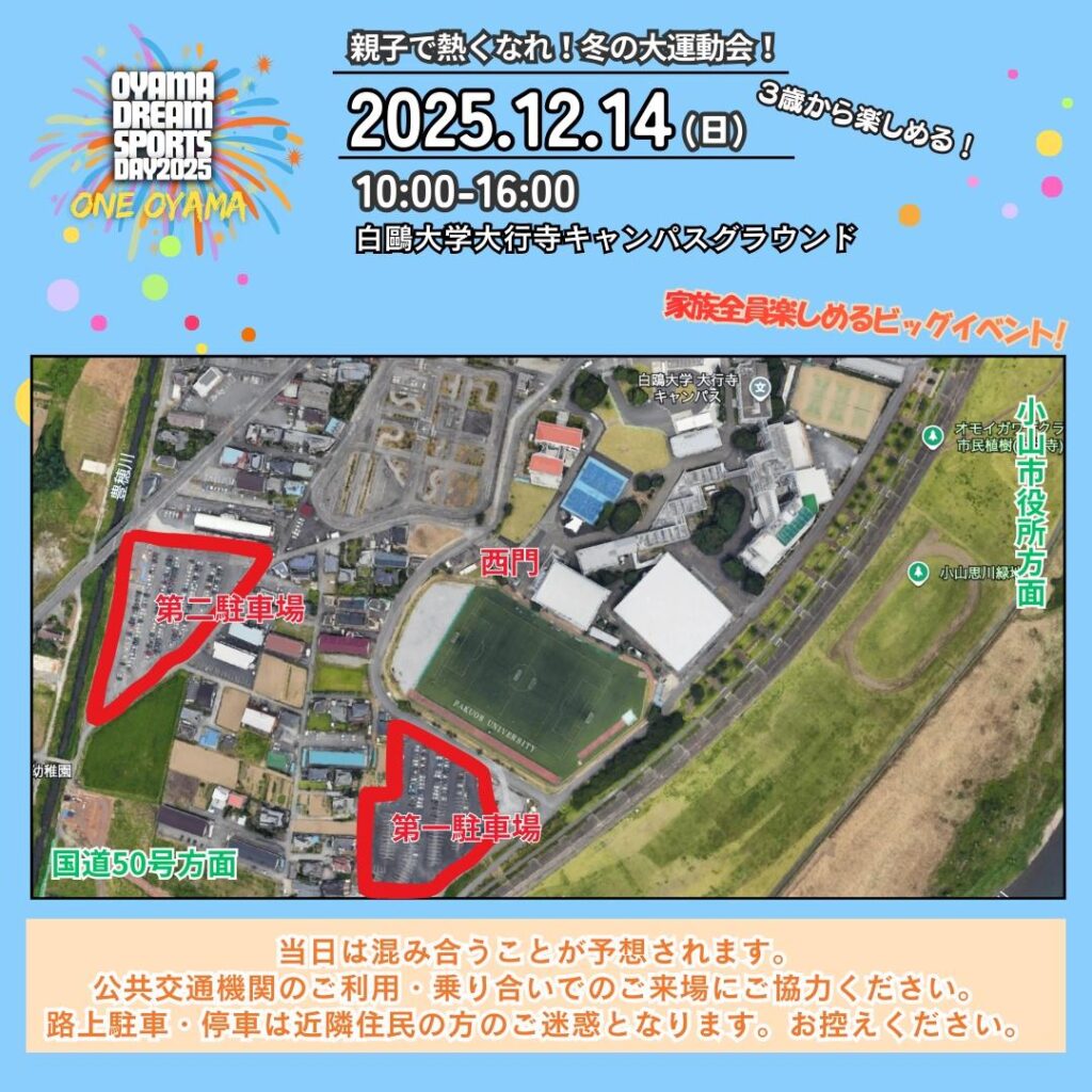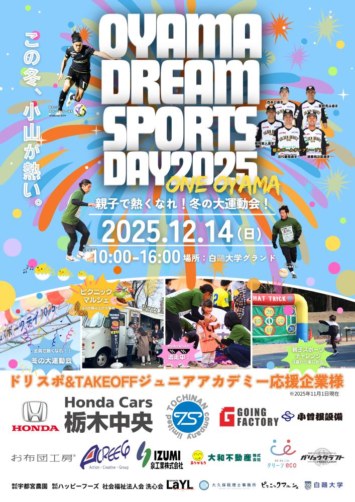 「小山ドリームスポーツデイ」(OYAMA DREAM SPORTS DAY 2025)は、2025年12月14日(日)10:00~16:00に、小山市大行寺の白鷗大学グラウンドで開催されます。