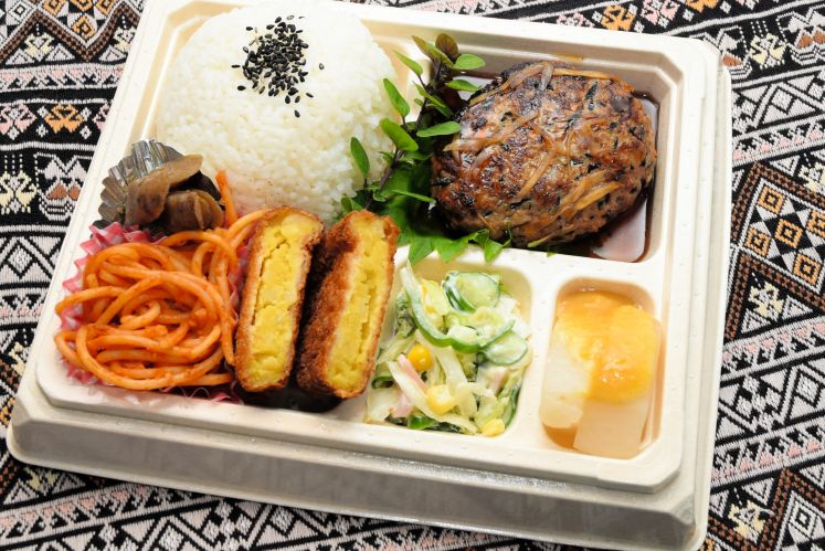 日替わり弁当は肉料理と5種類の総菜が味わえます