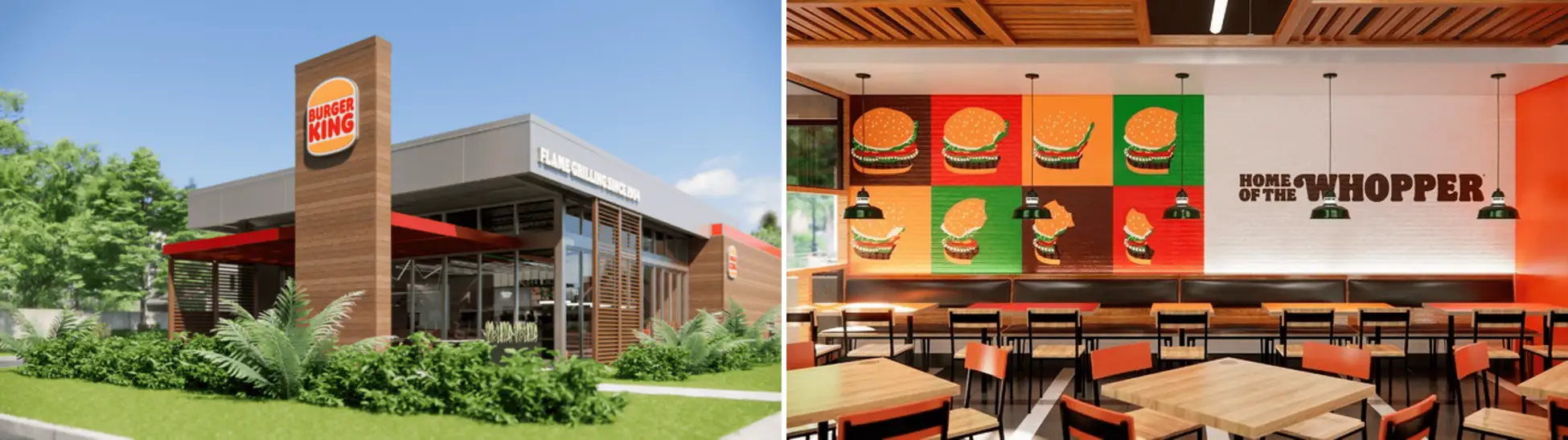バーガーキング店舗の外観と内観のイメージ(PR TIMESより)