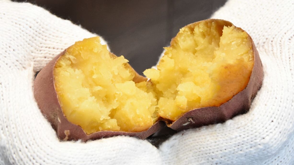 蜜があふれ糖度の高い焼き芋に仕上がり、皮ごと食べられるそうです。