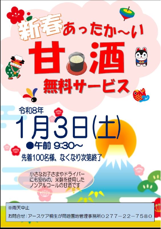 先着100人限定! 「新春あったか~い甘酒無料サービス」(3日)