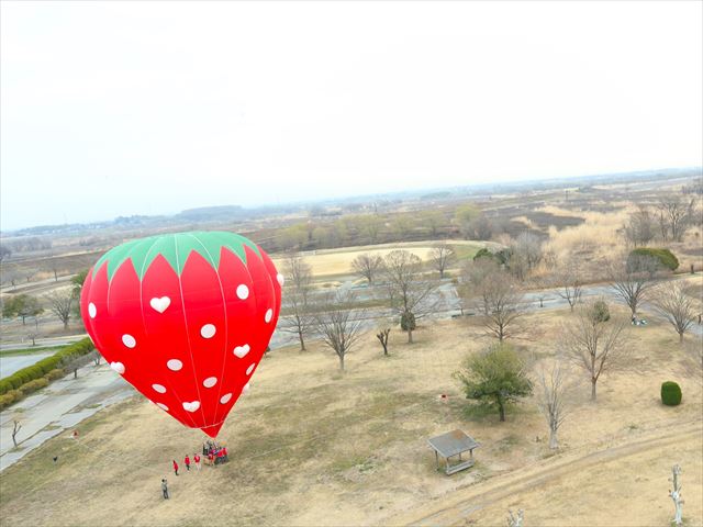 群馬ではおなじみの強風“からっ風”が吹き荒れていますので、気球に乗るなんてめったにできない!一生に一度は乗ってみたい!という願いも。さらに、このイベントなら初めての気球がイチゴというすてきな思い出もできます。