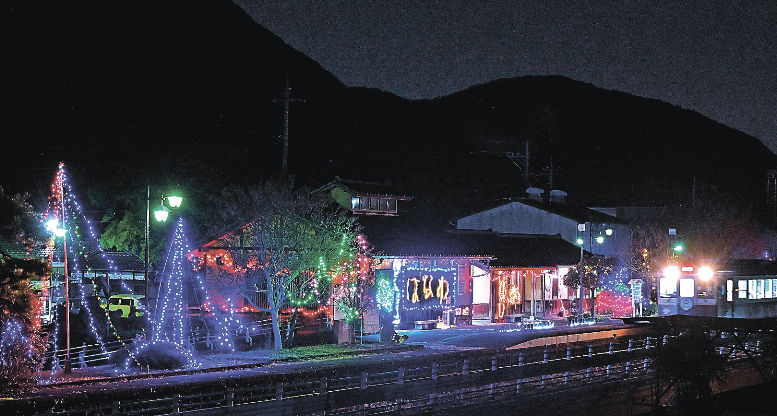桐生市から栃木県日光市をつなぐわたらせ渓谷鉄道では、各駅でイルミネーションの装飾をしています。