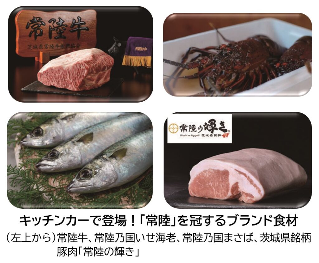 目玉企画は、茨城の特選食材が味わえる「究極のキッチンカー」。茨城のブランド牛「常陸牛」、県銘柄豚肉「常陸の輝き」、超大型の「常陸乃国いせ海老」、完全養殖・生食推奨「常陸乃国まさば」の4つのブランド食材が特別限定メニューで登場します。