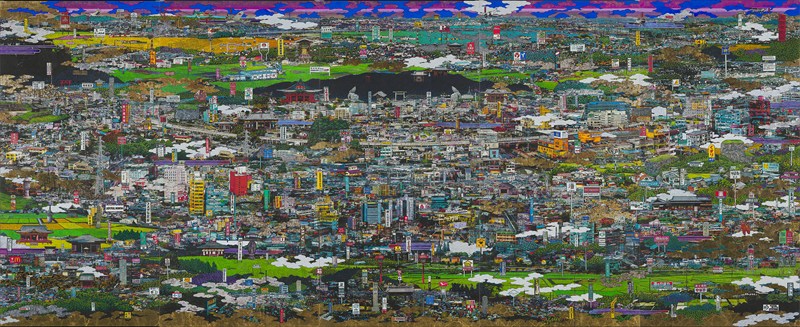 参考作品:6.藤原泰佑(1988-)《太⽥市街図》2017年、アクリル、和紙、顔料、箔、パネル-186.0×455.0cm