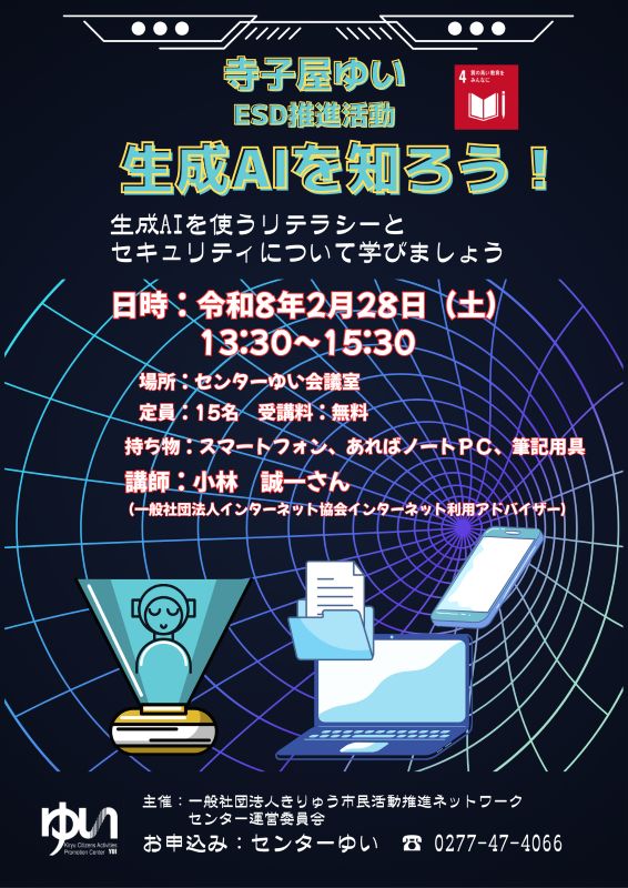 生成AIを使うリテラシー(知識を活用する能力)とセキュリティについて学びます。