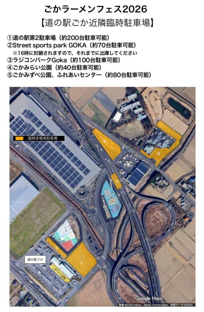 駐車場:道の駅ごか駐車場、同第2駐車場、ラジコンパークGokaほか