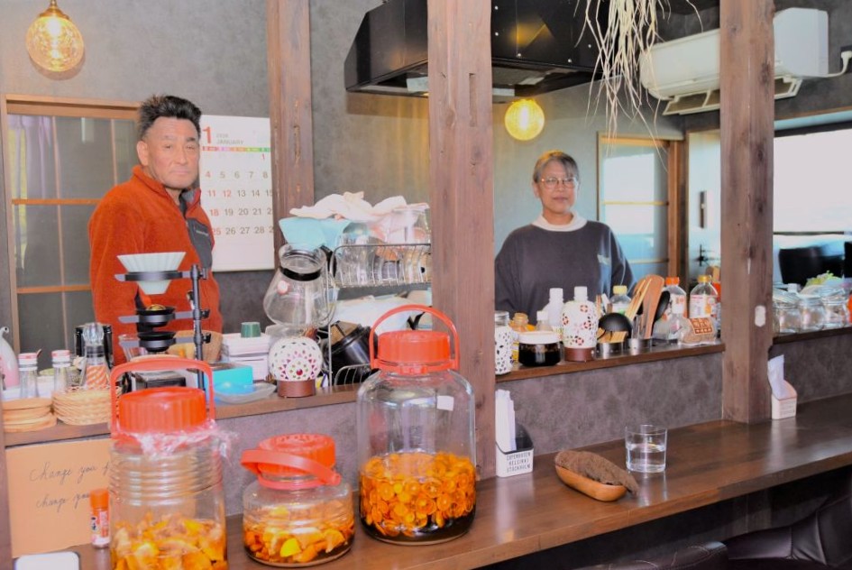 体に優しくおいしい料理を作る貴子さん(右)とコーヒーに詳しい光則さん