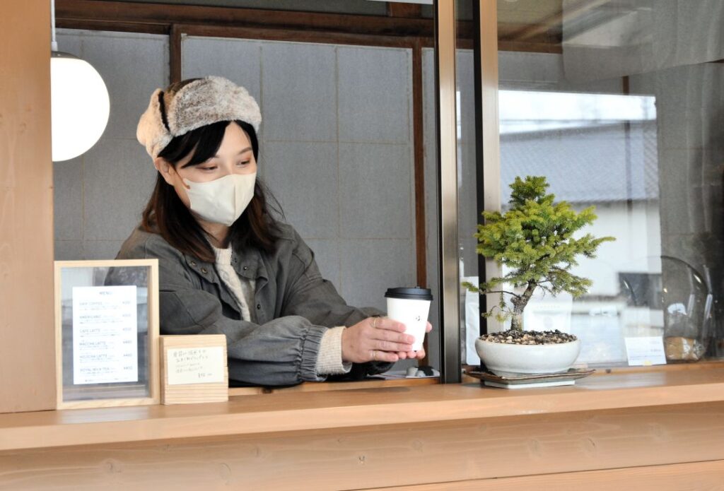 「うずらコーヒー」は産地にこだわった豆を1杯ずつハンドドリップ。ミルクティー、ほうじ茶ラテもあります。450円~。