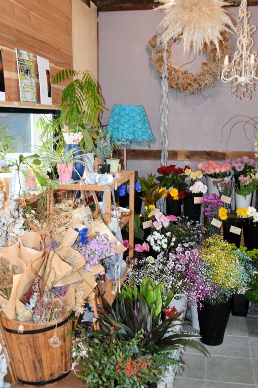 花を扱う「花ノ小屋」は生花やドライフラワーの花束、アレンジメントなど豊富。
