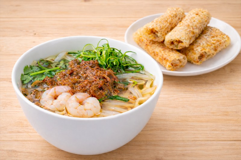 台南セット」(1400円)は、代表的なローカルグルメを一度に味わえるセット。エビのうまみが広がる香り高いスープが特徴の担仔麺(タンツーメン)揚げ春巻きをセットで楽しめます。