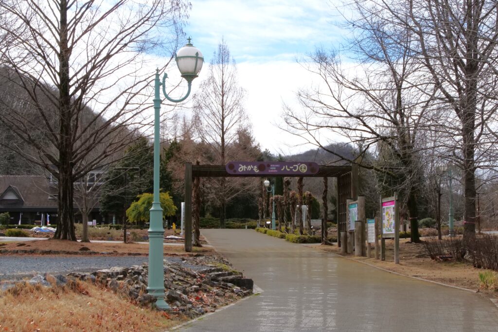 万葉庭園に隣接する駐車場はなく、最寄りの西駐車場からは徒歩15分。西駐車場の近くにはハーブ園やカフェ併設のショップ「香楽亭」もあります。