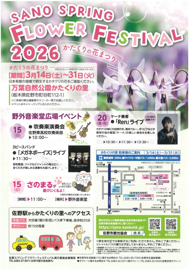 最新の開花情報は、佐野市観光協会のホームページ(https://sano-kankokk.jp/)やSNSで随時更新されます。