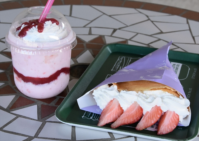 「苺&純生クリーム」のクレープ(右)と「やよいひめ苺のスムージー」