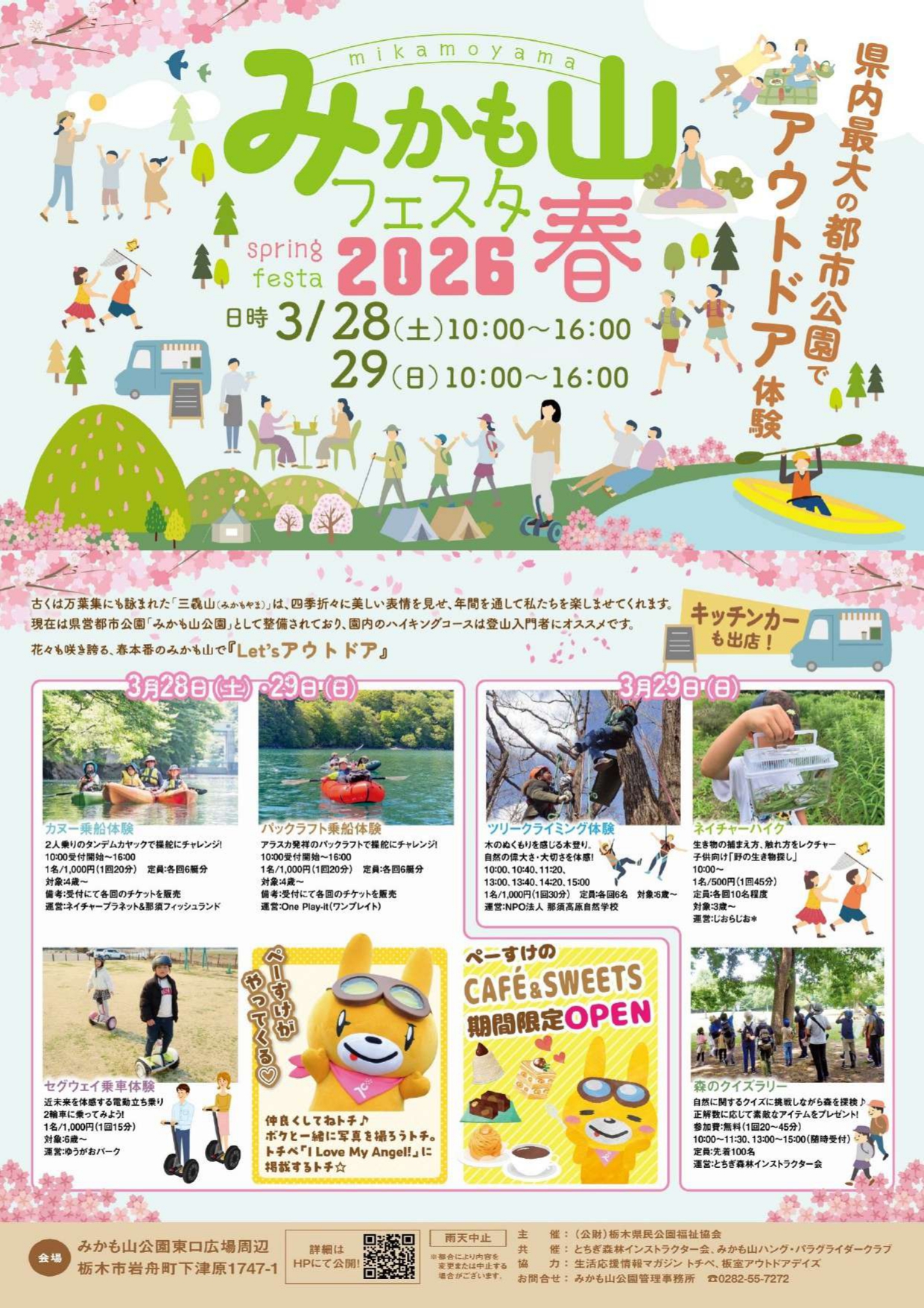 栃木市で3月28日~29日「みかも山フェスタ」当日参加可のアクティビティに飲食出店も