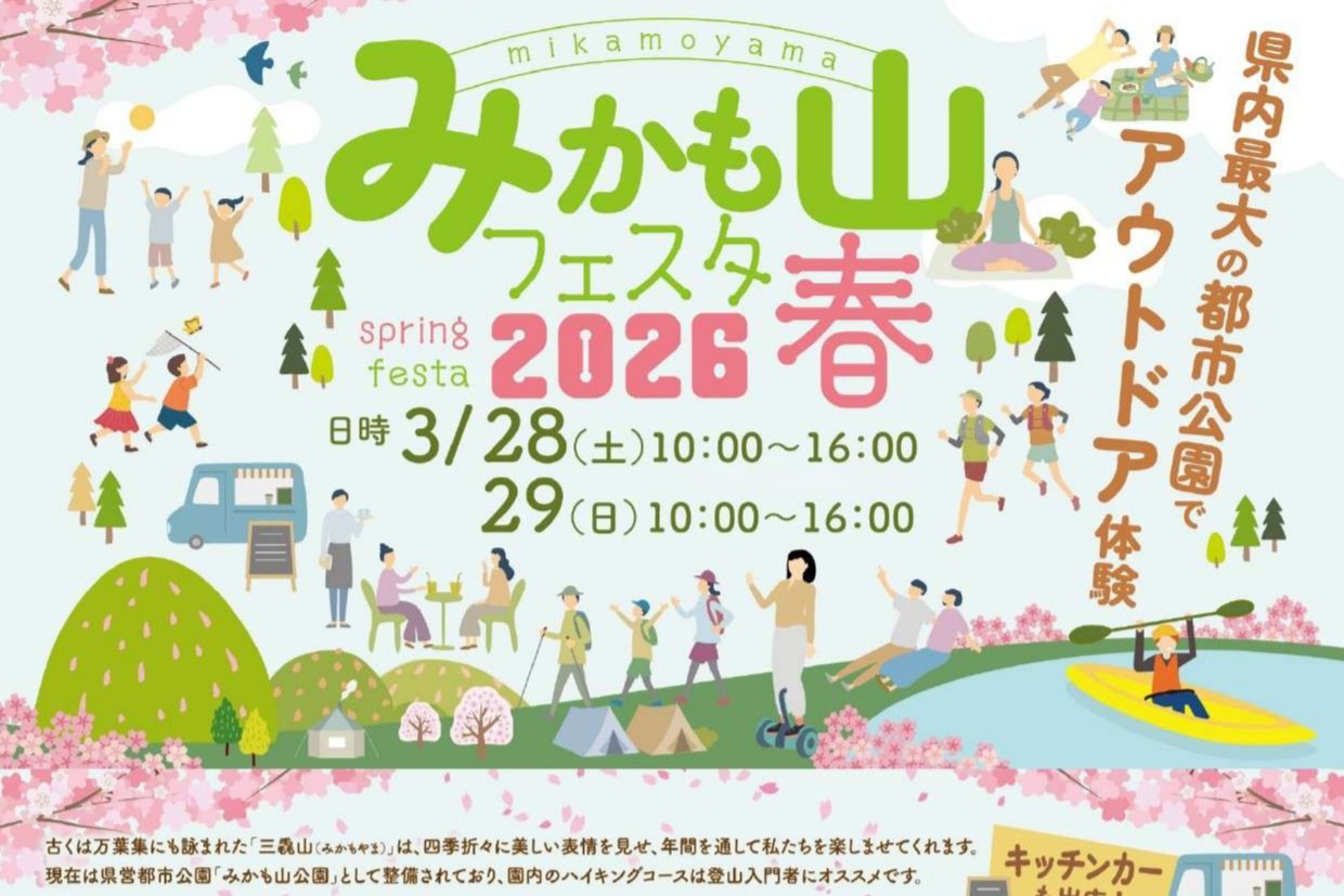 栃木県栃木市と佐野市にまたがる「みかも山公園」の東口広場周辺で3月28日(土)~29日(日)の2日間、自然の中でさまざまなアクティビティを体験できる「みかも山フェスタ2026春」が開催されます。気になるアクティビティの内容とキッチンカーなどの出店情報をお伝えします。