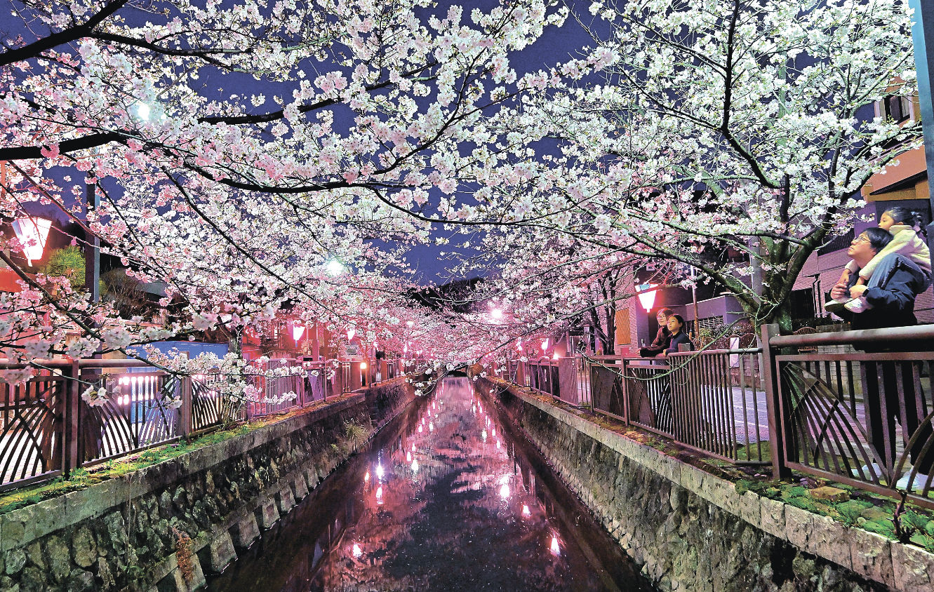 大光院(太田市)の南側から市街地へ続く八瀬川沿いの「桜プロムナード」では、間もなく満開となるサクラがライトアップされています。水面に映った鮮やかなソメイヨシノが幻想的な雰囲気を醸し出しています(3月28日撮影)。