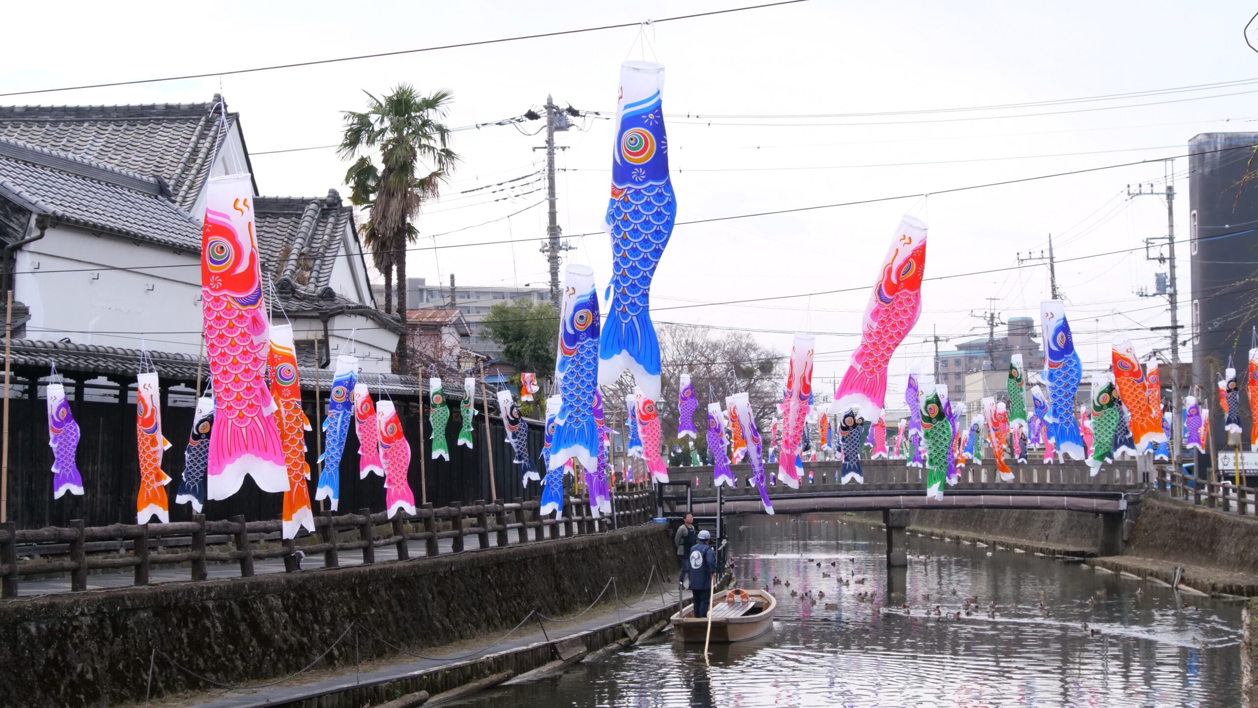 2026年は3月14日(土)から恒例行事「うずまの鯉のぼり」として川面を彩り、端午の節句(こどもの日)後の5月15日(金)まで掲げられます。