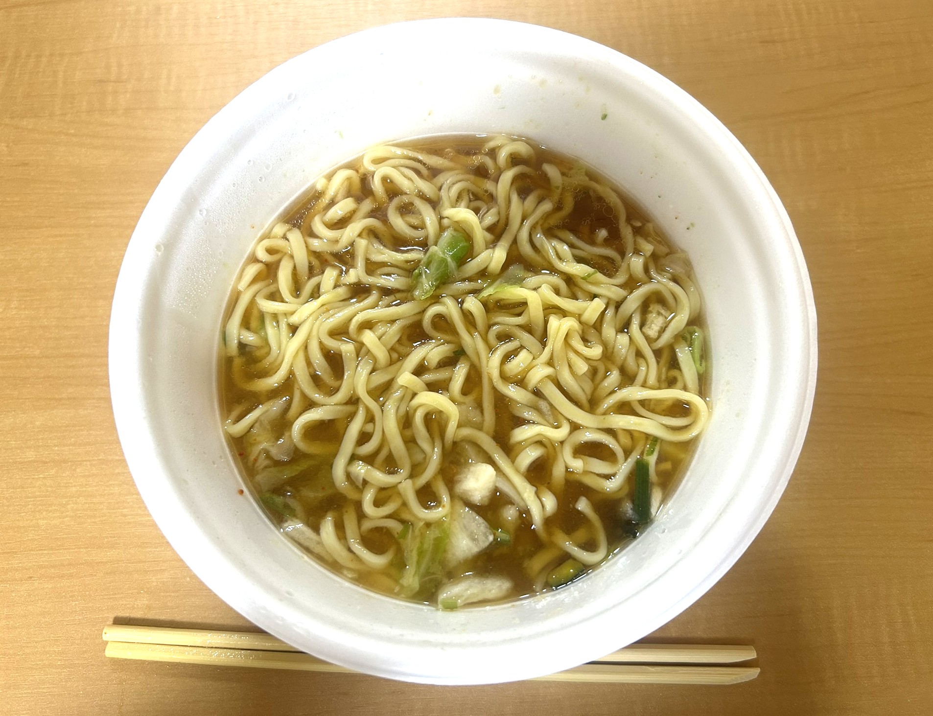 スープの“あんかけ感”をさらに改良したとのことで、とにかくスープのとろみに感動です。また、ノンフライ製法の極太麺は、ゆでたてのようなモチモチ&つるんと食感で、食べ応えも抜群でした。