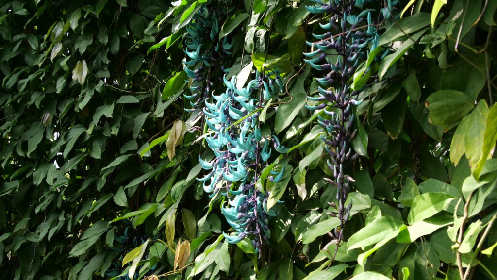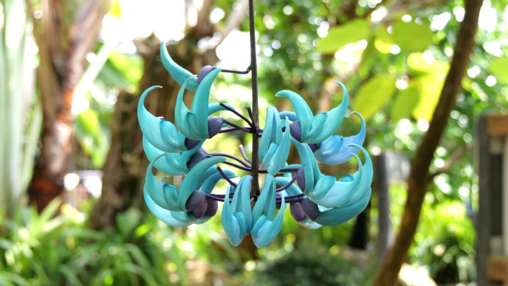 ヒスイカズラは、フィリピンのルソン島を原産とするマメ科のつる性植物です。現地の人でも滅多に見ることができないといい、絶滅危惧種に指定されています。