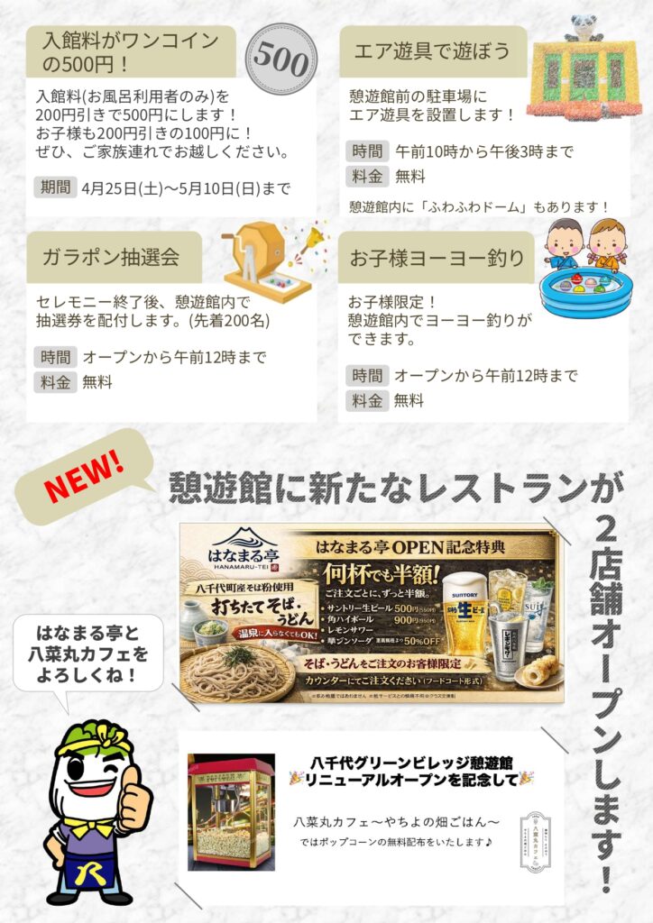 茨城県八千代町の日帰り温泉施設、八千代グリーンビレッジ憩遊館「やちよ乃湯」が、2026年4月25日(土)にリニューアルオープンします!