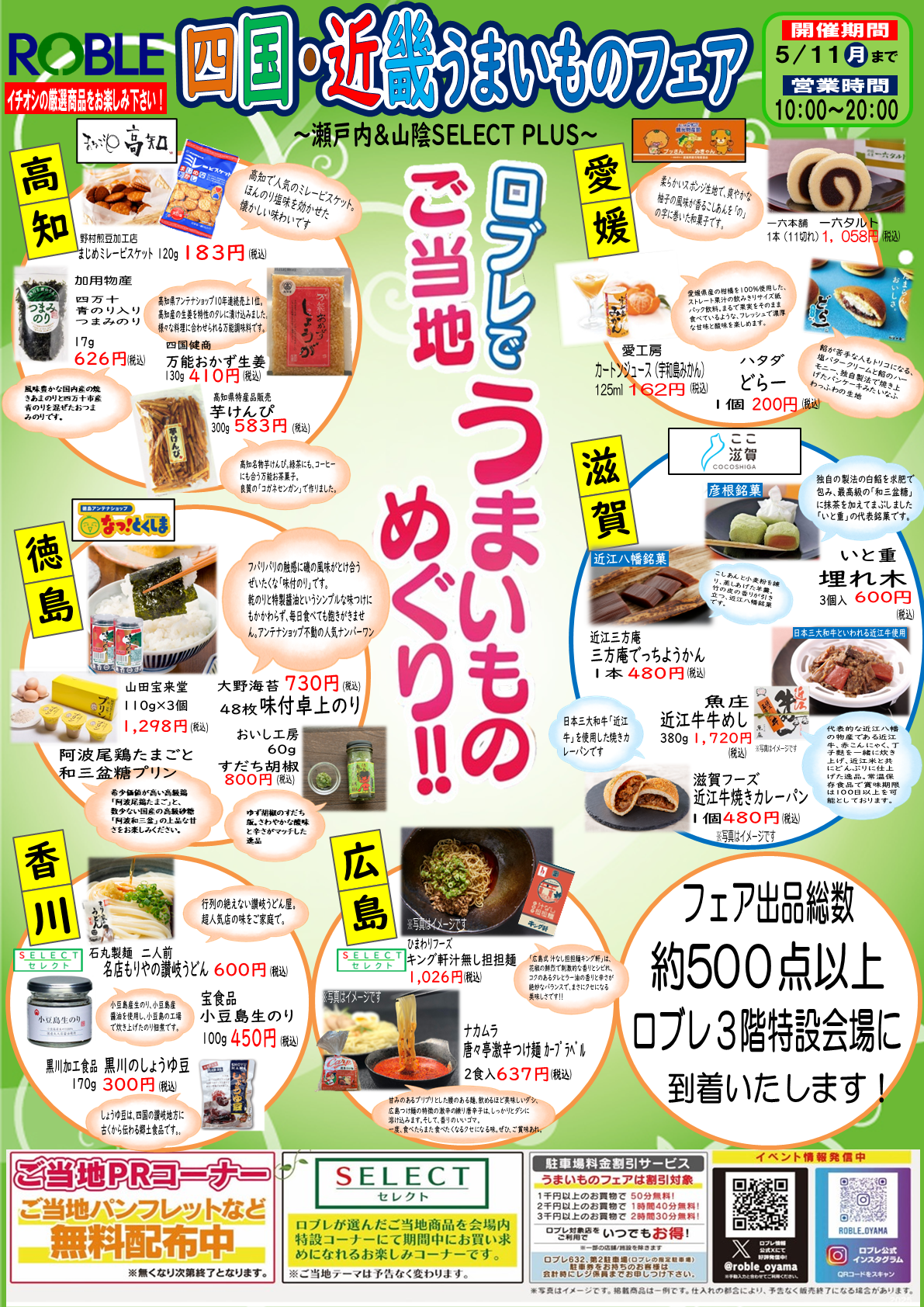 出品があるのは、北から滋賀、京都、大阪、鳥取、島根、岡山、広島、山口、徳島、香川、愛媛、高知の12府県。ロブレセレクトの特別枠も含めて合計約550商品(4月20日時点)が並びます。