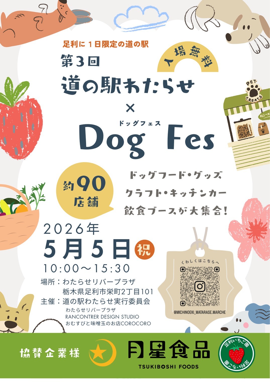 栃木県南部の市では唯一、道の駅がない足利市に“一日限定の道の駅”を創り出すことをテーマに、キッチンカーをはじめとする飲食や物販、ワンちゃんを中心とするペット関連グッズなどのお店が集います。