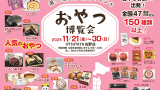 グルメ 佐野市のTSUTAYA佐野店で「おやつ博覧会」全国150種類以上のご当地お菓子が集結します!